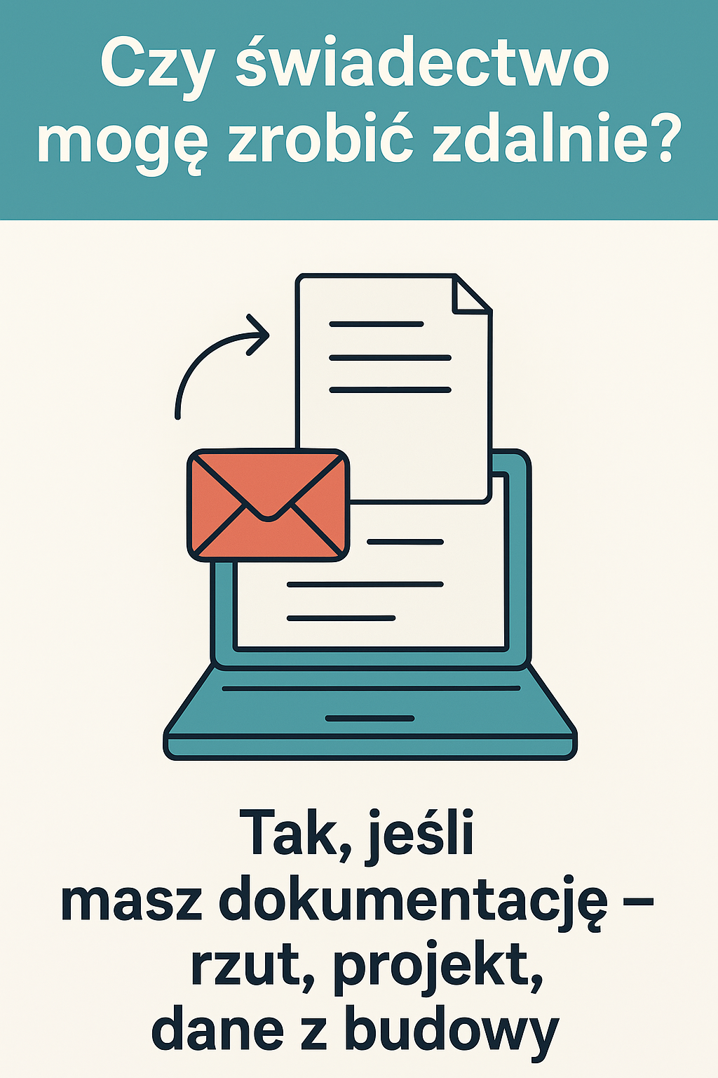 📧 Dokumenty możesz przesłać mailem, a samo świadectwo otrzymasz w formie elektronicznej – z numerem z Centralnego Rejestru Charakterystyki Energetycznej Budynków.